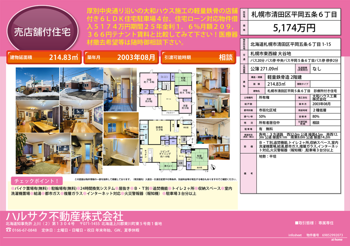 ここに掲載できない物件情報もございますので、お気軽に弊社011(742)2322 までお電話ください。
