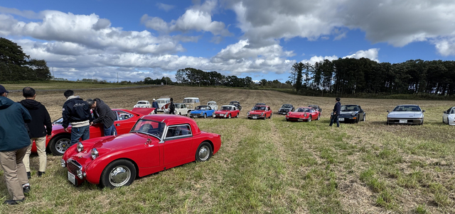 数年前から古いものばかりに興味が湧いてきて、バイクもクルマも年代物ばかりになってきたものだから、その筋の方にお誘いを受けて旧車ミーティングなるものに初めて参加しました。場所は鵡川町のダチョウファームとのことで、行ってみると広大な敷地が開けております。何処か奥でダチョウ飼っているのかなと思ったら、この場所の経営者のあだ名がダチョウさんということで完全に勘違いでございました。